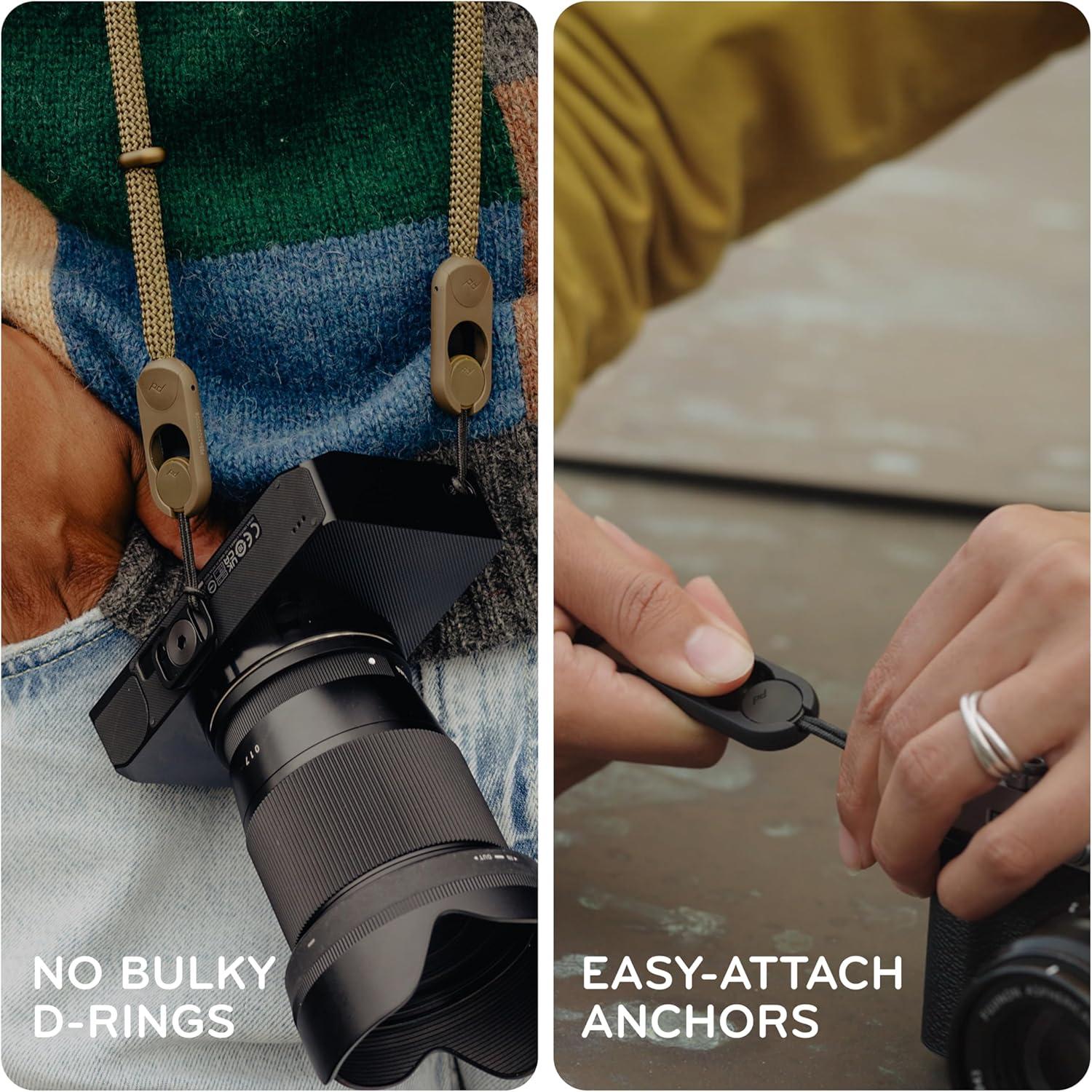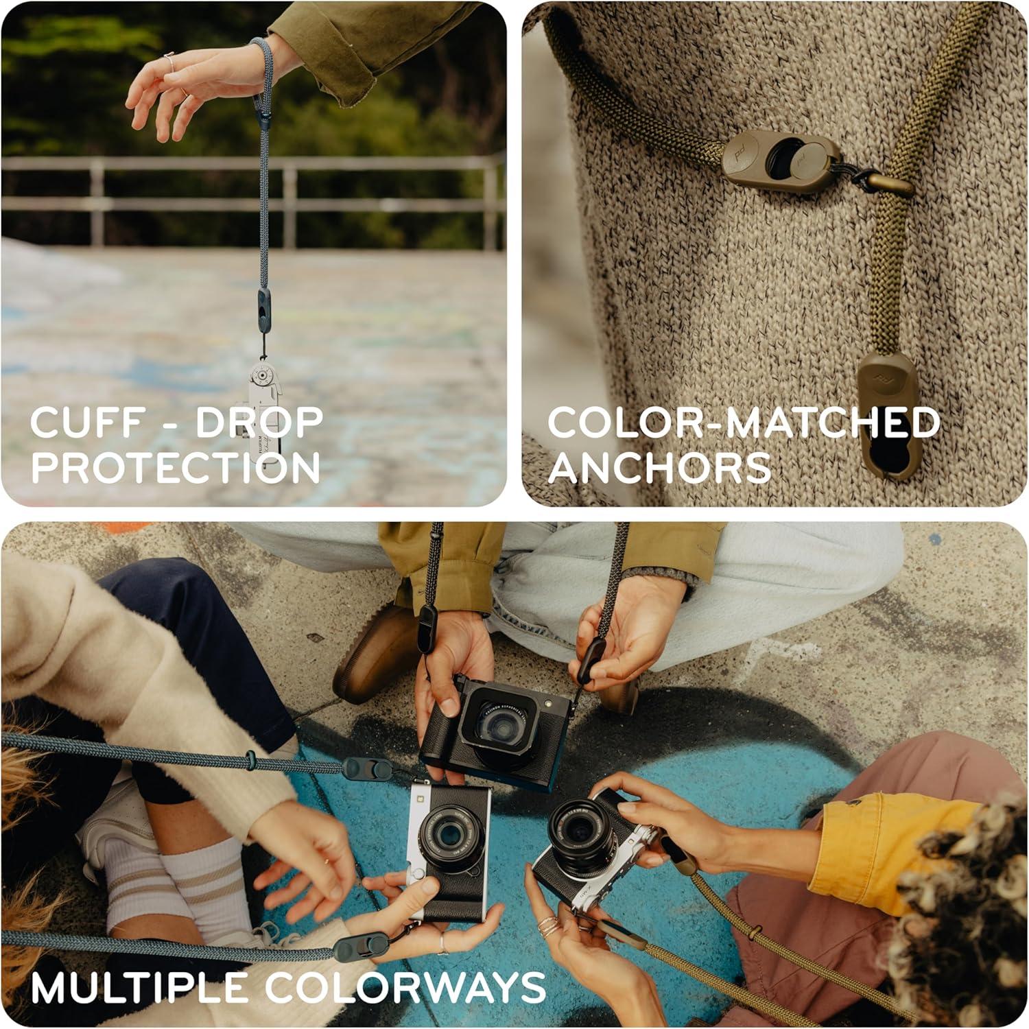 A simplified take on the Peak Design camera strap, the Cuff Rope offers a streamlined design for modern, unobtrusive protection. Elegantly simple, this Peak Design camera strap eliminates all nonessential strap features, yet retains premium hardware and materials that are thoughtfully integrated for ease of use. Woven nylon material offers the perfect blend of strength, padding and stretch for comfortable carry. The wrist loop locks open for quick access, then comfortably cinches to fit your wrist for a secure, customized hold. If your camera slips, it automatically tightens around your wrist, providing a vital safeguard for your equipment. Updated v5 Anchor Link technology creates a sleek look, with strap ends flowing directly into custom hardware – no visible stitching, O-rings, or connection hardware – while still enabling quick connection and release. Each Anchor holds over 200lb (90kg) and features 2-layer anti-abrasion thermoplastic cords with wear indicators, so you’ll always know when it’s time for a swap. Elevate your camera game with the Cuff Rope, blending minimalist design and outstanding performance into a wrist strap that’s always within reach.