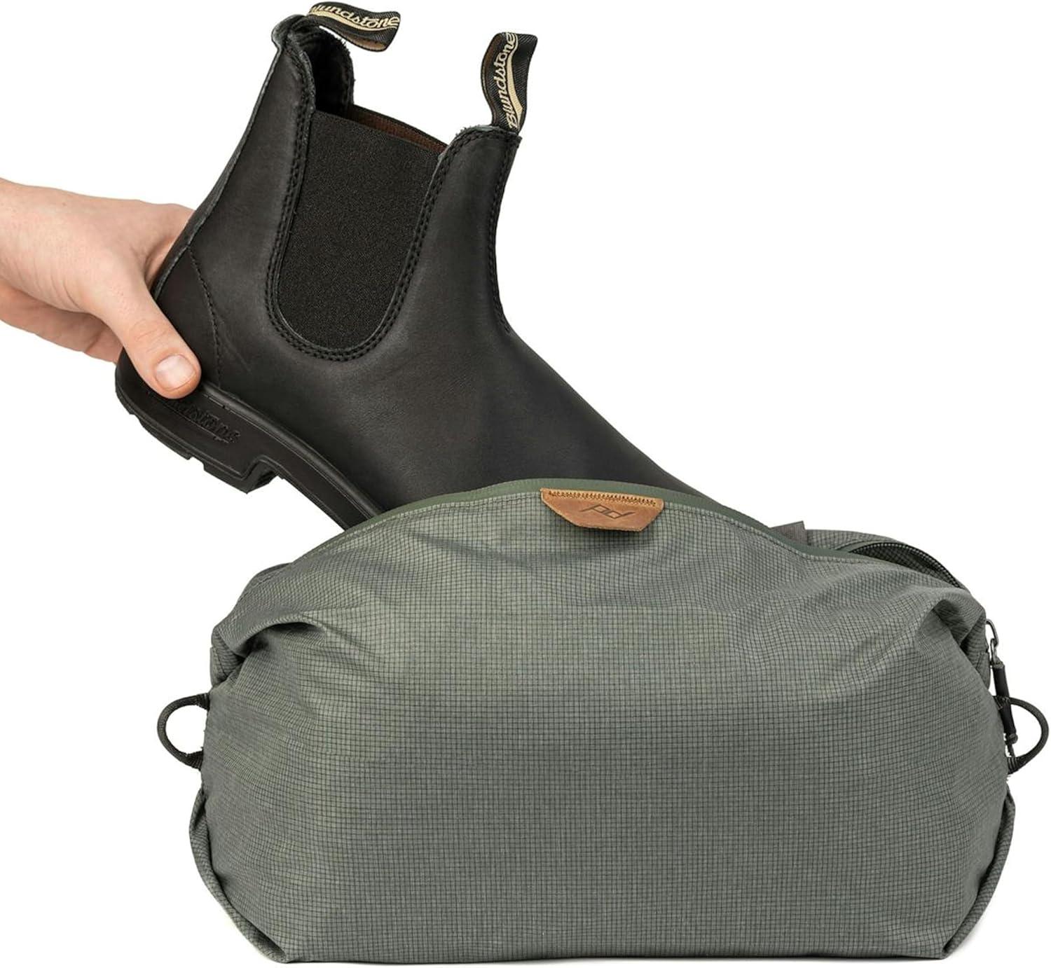 DEDICATED SHOE STORAGE: A durable and ultra-packable solution for keeping shoes, dirty clothes or other items separate while traveling. Fits 1–2 pairs of shoes (varies by size) and integrates perfectly with Peak Design Travel Bags or any suitcase.