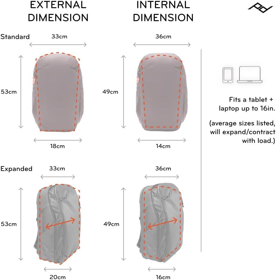 DESIGNED TO ADAPT: Expandable from 27L to 33L, this carry on approved pack adjusts to fit your load. Side pockets expand to hold bottles or tripods, while a large rear hatch and subdivided top pocket keep your essentials organized and easy to reach.